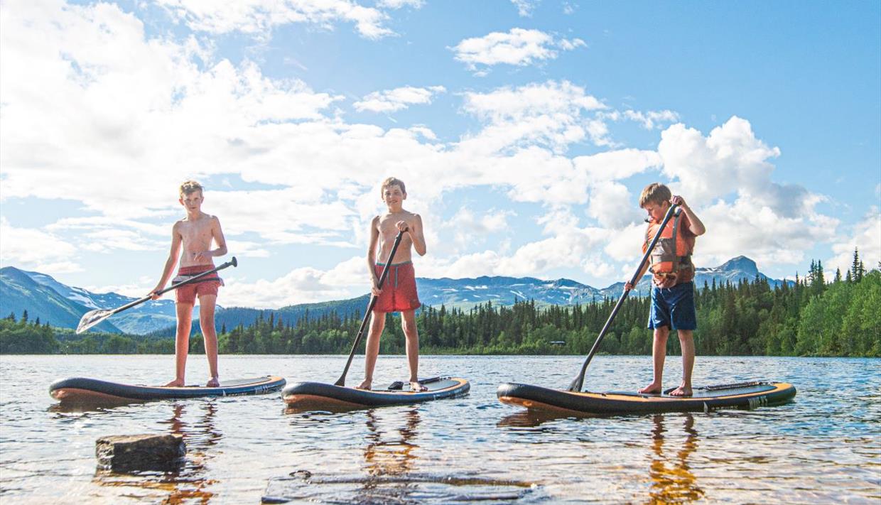 As in all Mountain Lakes, it can get windy on short notice. We strongly recommend you to stay in the bay area and paddle close to the shore. If you want to go for a longer paddling tour or a fishing tour, we recommend you rent instead a canoe or a kayak.