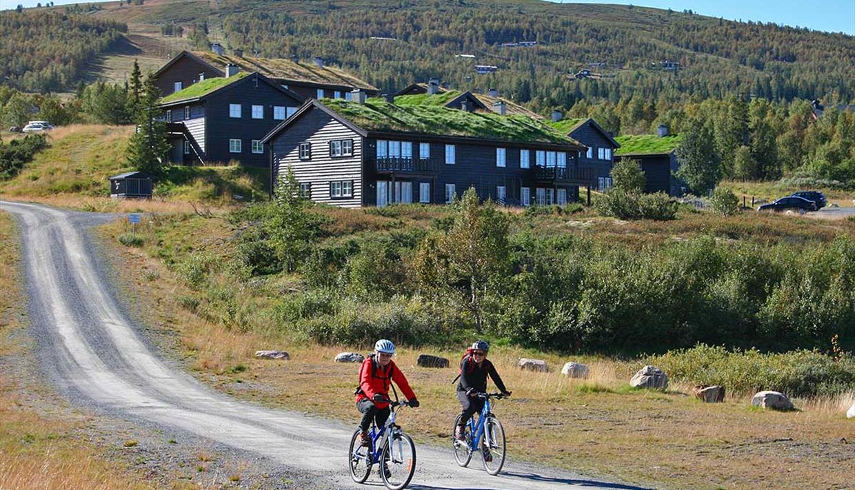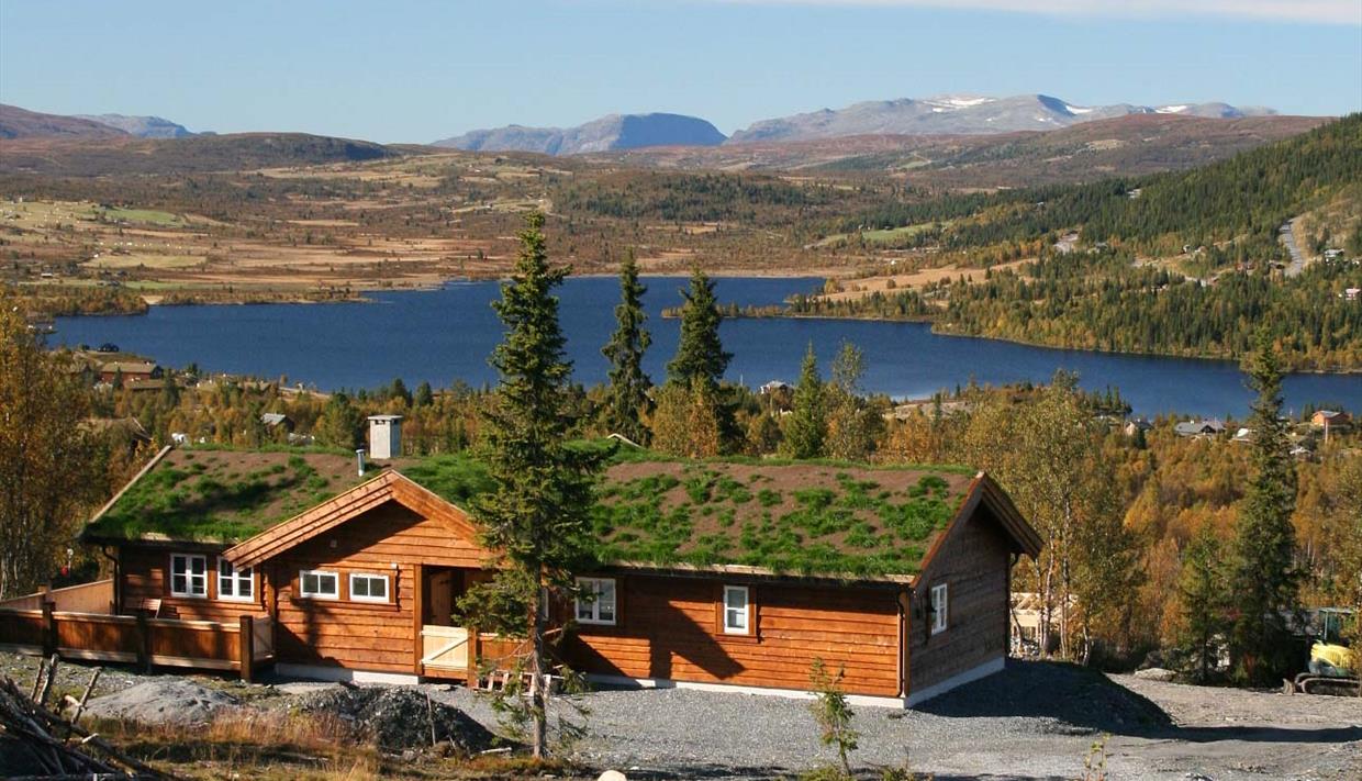 These are wooden buildings with green/turf roof which is very typical for the Valdres region.
