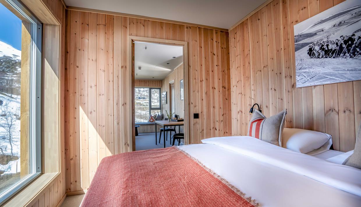 Even though we are surrounded by whatever the mountains can offer of activities outdoors, we want you to be able to relax and simply enjoy - sitting on the deck with a good drink, reading a book from the library or chill on the Wonderland matrass in your room and the big windows that make you almost feel like you lived outside – we want you to find rest and relaxation.