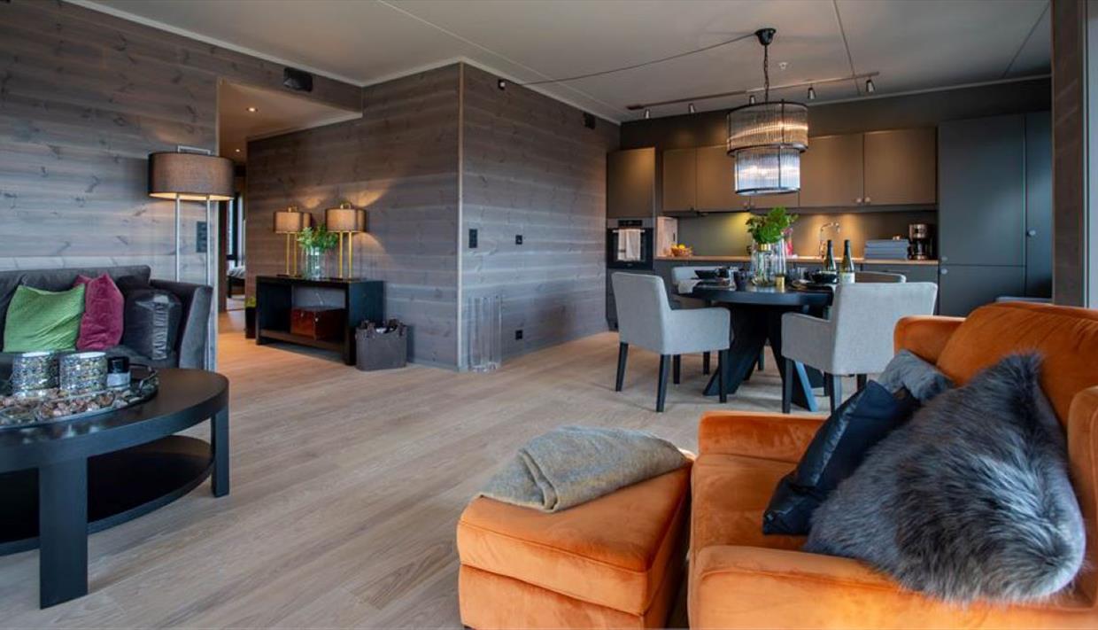 The apartment building is one of the four apartment buildings located in the Beitostølen center with its characteristic skyline right next to the alpine centre. Here you will find ski-in and ski-out, and the building is within walking distance to Lodge900 if you are hungry or thirsty. Furthermore, it is also within walking distance of most things due to Riddertunet's central location, such as grocery stores, tourist information, well-stocked sports shops, and health and wellness facilities.
