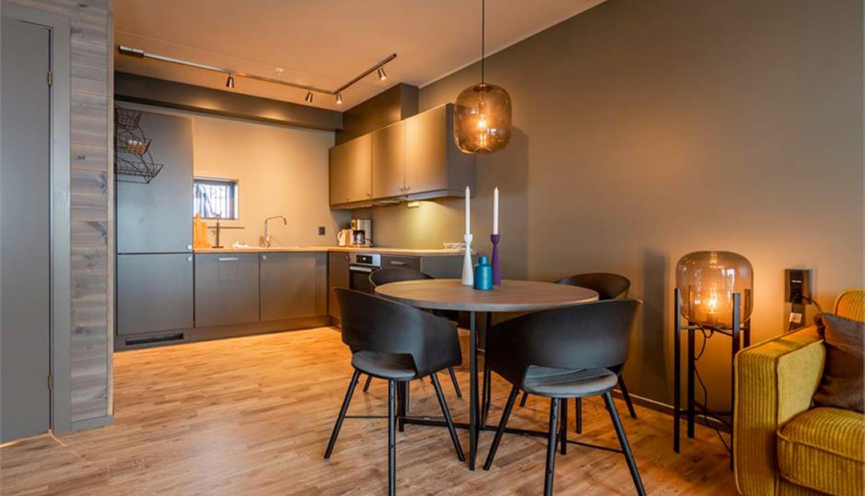 At Riddertunet you will find apartments for up to 4 people and larger apartments that are suitable for up to 6 people. The smallest apartments have two bedrooms and are 50m2, while the largest are just over 60m2 and have three bedrooms. All apartments have a dining area, living room and west-facing terraces. Washing machine, free internet access, garage space and lift are of course also included in the package.