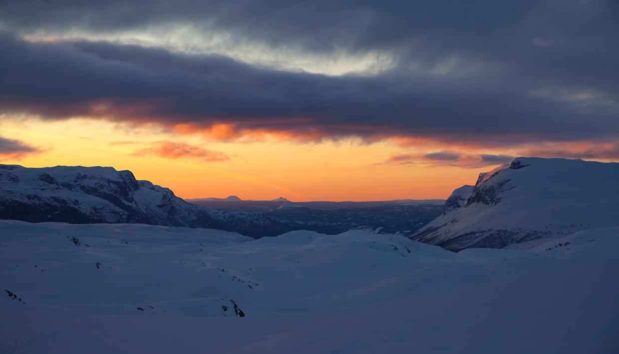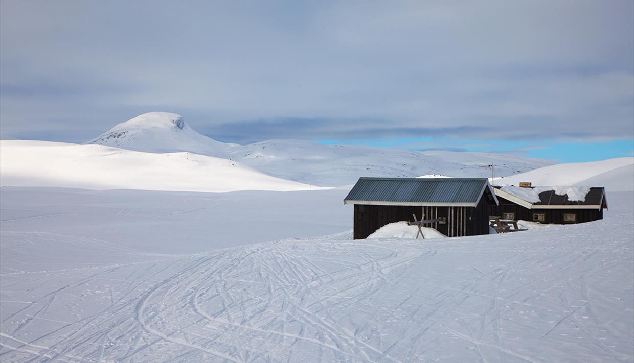 Drive on the E16 to Tyinkrysset and park at the ski center (base station of the ski lift). The cross-country skiing track to Sulebu starts with a solid elevation gain up to the Tenla crossing where you reach the high plateau. Here, you keep to the right and continue less steep but ascending all the way to Sulebu. As you gain elevation, the view gets wider and breathtakingly stunning as Jotunheimen appears to the north. The distance from the parking lot to Sulebu is 10 km.