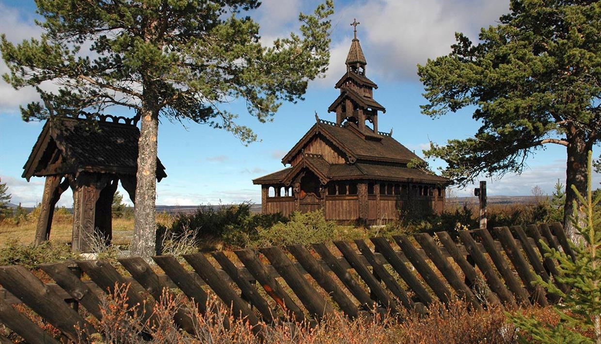 In the following crossing, turn right and cycle uphill onto the plateau of Golsfjellet towards Lauvsjø. If you take a look on the map, you will see that it is possible to extend the trip with approx. 5 km by cycling around the idyllic Lake Lauvsjøen. The mountain Skogshorn is a mighty sight from here. Continue north-east towards Golsfjell Fjellstue at Auenhauglie, from where you can enjoy a panoramic view over Lake Tisleifjorden and a nice downhill run to its shore. Cycling along the lakeshore, you might want to check on the temperature of the water. Is it tempting to take a dip? Before you arrive at Oset the road turns away from the lake and climbs a bit. Soon you will see the small mountain chapel at Oset. Keep to the right here and, with the skiing centre at Bualie in sight, work yourself up the last uphill on this circuit. Arriving at Ørterstølen, you reach the top of the hill and the rest of the return to Fjellheim is easy cycling.